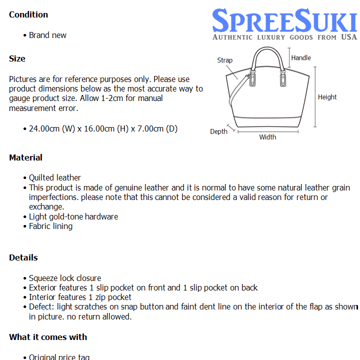 Defect: light scratches on snap button and faint dent line on the interior of the flap as shown in picture. no return allowed.