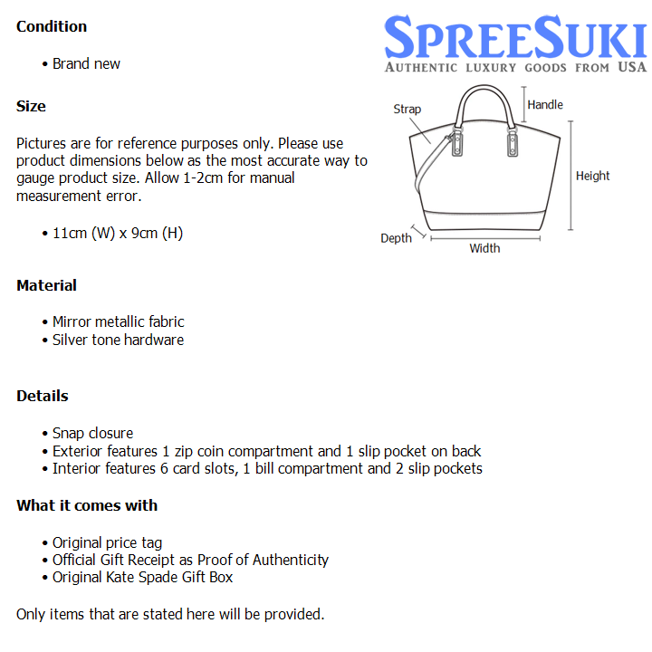 Home / Kate Spade / Wallets / Bridget Mirror Metallic Small L-Zip Wallet Silver # KM555