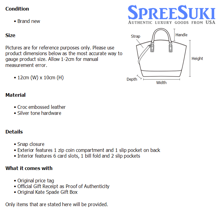 Home / Kate Spade / Wallets / Madison Croc Embossed Small L-Zip Wallet Silver # KM622